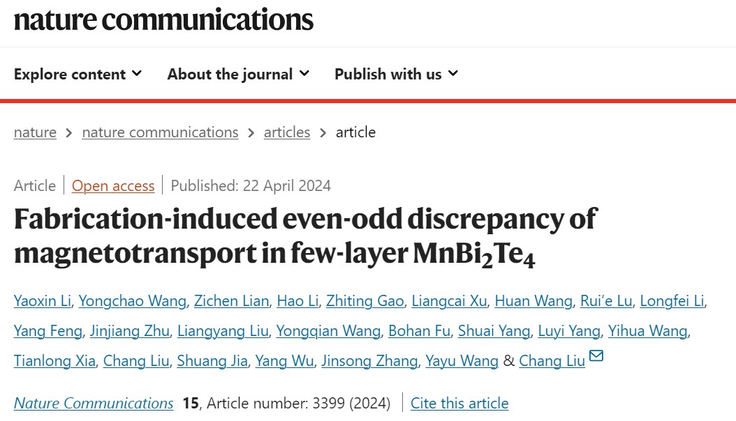 近期,伟德国际VICTOR1946物理学系、量子态构筑与测控教育部重点实验室刘畅副教授联合人大-清华-北大-复旦-南科大等九个团队,利用光学-输运-磁光-成像等多种实验手段,研究了超过200块微纳器件的量子物性,首次揭示微纳加工会对MnBi2Te4的有效层厚产生显著影响。这一重要发现指出了二维材料领域中广泛采用的通过光学对比度确定层厚的方法存在的不足,解决了长期以来MnBi2Te4领域实验观测到的反常奇偶层振荡的争议。相关研究成果以“Fabrication-induced even-odd discrepancy of magnetotransport in few-layer MnBi2Te4”为题发表在2024年4月22日Nature Communications上。