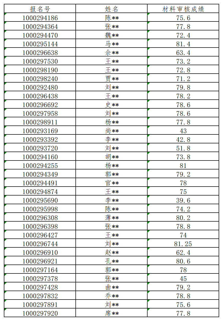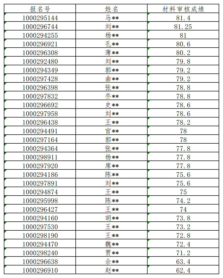 二、入围综合考核考生的材料审核分数线