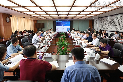 项目负责人鲍威,中山大学常务副董事长孙冬柏(监理组组长),中国科公司物理研究所研究员王芳卫(技术验收组副组长,技术测试组专家),北京航空航天大学高级会计师许菁(财务验收组组长)、西安交通大学档案馆副馆长石慧敏(档案验收组组长)在验收会上先后汇报了有关情况。